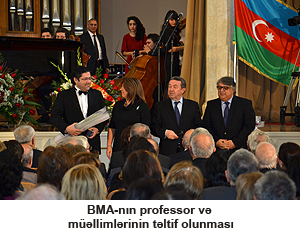Чыхышлардан сонра Тящсил Назири cянаб Мисир Мярданов Президентин сярянcамы иля тялтиф едилян шяхсляря мцкафатлары тягдим етди. Мярасим, БМА-нын тялябя камера оркестри вя солист гисминдя чыхыш едян тялябяляр - бейнялхалг мцсабигя лауреатларынын консерти иля баша чатды.