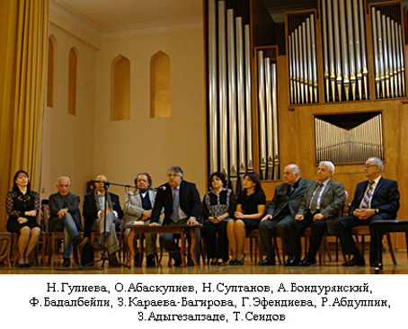 Незабываемое впечатление произвело на аудиторию выступление Зохраба Адигезалзаде. Он очень красочно и подробно рассказал, как они вместе с замечательным скрипачом Сарваром Ганиевым готовились к первому исполнению Скрипичной сонаты Кара Караева и дополнил свой рассказ тонким и проникновенным исполнением пьес К.Караева.