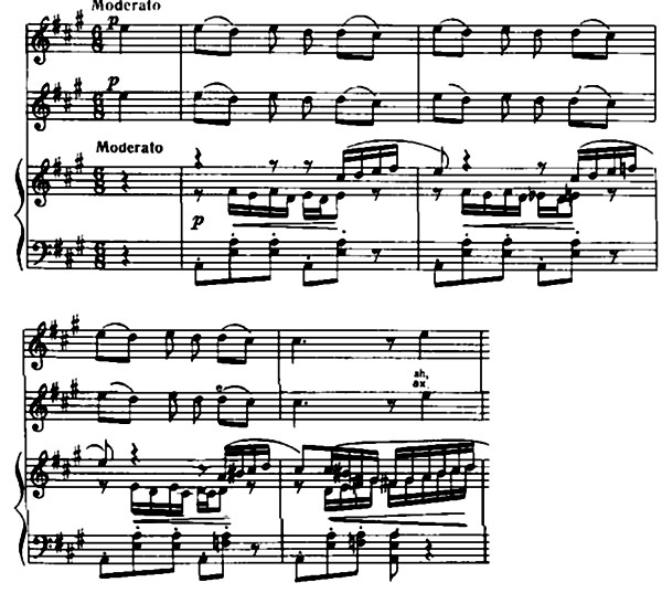 Segah ladından istifadə melodikada maraqlı cəhətləri üzə çıxarır. I pərdədən Leyli və Məcnunun dueti do diyez segah ladına əsaslanır. Melodiyanın quruluşunda ladın üç istinad pilləsi əsas rol oynayır: Tonika (IV) – do diyez, əsas ton (II) – lya, əsas tonun kvintası (VI) – mi. Bu pillələrin qovuşması, həmçinin harmoniyanın özəyinə çevrilir.