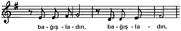 Ikinci cümlədə ilk ibarə yuxarı istiqamətli sekvensiya kimi hərəkət edir, ikinci ibarə isə əksinə, bir ton aşağıda, dönmə şəklində səslənir.