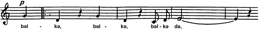 n ibarətdir (bununla da iki 4 hecalı söz birləşməsi 4+4 kimi birləşir). Həmin qısa ibarələr yekun xarakterlidir və mahnını tamamlayır. Beləliklə, bu nümunədə də şerin məzmununda ən əhəmiyyətli sözlər bir neçə dəfə melodiyada təkrarlanır.