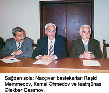 Rəşid Məmmədov (bəstəkar, Naxçıvan Bəstəkarlar Təşkilatının üzvü): Əvvəla onu qeyd edim ki, Naxçıvan MR-da Bəstəkarlar Təşkilatı açılandan ilk dəfədir ki, belə yüksək səviyyədə toplantı keçirilir. Naxçıvan Bəstəkarlar Təşkilatına xüsusi diqqət göstərib Bakıdan gələn nümayəndələrə öz dərin minnətdarlığımı bildirirəm. Habelə, əsərlərin ifası ilə əlaqədar Naxçıvan Şəhər Mədəniyyət Idarəsinin rəhbərliyinə, xalq çalğı alətləri və kamera orkestrinin rəhbərlərinə öz təşəkürümü bildirirəm.