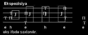 Експозисийада мювзунун кечиди 4 дяфя, cаваб ися 2 дяфя верилир (мювзу 2 дяфя дя артыг сяслянир); cаваб реалдыр, якс ифадя сахланылмышдыр.Бу бюлмя пп -- п динамикасы иля мцшайият едилир.