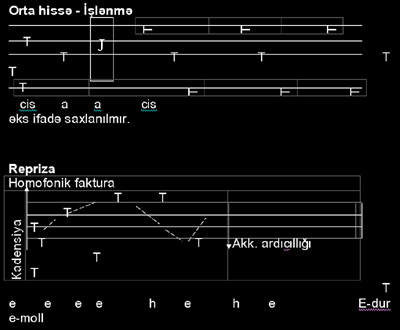 Репризанын сонунда I щиссядян илк мювзу (Е-дур-да, пп-да) трансформасийа олунараг (динамик шякилдя) - садя дюрдсясли аккорд ардыcыллыьы гисминдя тягдим едилир вя е-молл-да II щиссяни тамамлайыр.