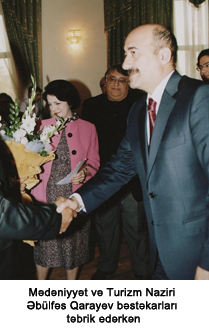 - Халг кцтляляринин мусиги биликляри иля маарифлянмяси, ушаг вя эянжлярин естетик тярбийяси йюнцмцндя хцсуси ишлярин эюрцлмяси: бястякар вя мусигишцнасларын ян мцхтялиф истещсалат мцяссисяляриндя, тядрис ожагларында, республиканын мцхтялиф район мяркязляриндя чохсайлы эюрцшляринин, мусиги лекторийаларынын тяшкили бц бюйцк вязифяйя хидмят етмишдир.