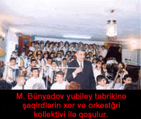 - Mən özüm ilk musiqi təhsilimi bu məktəbdə almışam. O vaxt mənə dərs verən müəllimlərin bəziləri artıq həyatda yoxdurlar. Mənə ilk musiqi təhsili verən bütün müəllimləri minnətdarlıqla yad edirəm. Hesab edirəm ki, məktəbin bu günkü yubileyində, uğurlarında onların da xüsusi zəhməti var. Müxtəlif illərdə məktəbə direktorluq etmiş Aydın Babayevi (1961-1964), Camal Qasımovu (1964-1970), MirYusif Manafovu (1970-1974), Elmar Hacıyevi (1974-1979), Oqtay Həsənovu (1979-1983) bu yubileydə xatırlamamaq, onlara təşəkkür etməmək olmaz. Məktəbin sürətli inkişaf mərhələsi respublikada böyük nüfuz qazandığı illər pedaqoji elmlər namizədi, dosent Nazim Kazımovun direktor və Adil Israfilovun tədris-hissə müdiri işlədiyi dövrə (1983-1992) düşür. Bu müəllimlərin musiqi məktəbinin nailiyyətlərində, dərs keyfiyyətinin yüksəlməsində, məktəbin abadlaşdırılmasında, yerli kadrların yetişdirilməsində xüsusi əməyi var.