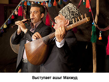 Наши соотечественники выступили и в салоне Рудаки, где их представил Ковсар Али Шахбази из Мияне (Восточный Азербайджан) – неутомимый пропагандист и блестящий исполнитель ашыгской музыки, дастанов. Наделенный несомненным актерским талантом, этот многогранный мастер - певец, замечательный инструменталист- импровизатор, поэт, острослов запомнился нашим слушателям по своим оригинальным театрализованным выступлениям на Международном фестивале ашыгской музыки 2010 года, охватившим многие регионы нашей страны. В конце интереснейшей концертной программы к азербайджанским мастерам присоединились их иранские коллеги – музыканты великолепного ансамбля «Деде Горгуд», руководимого К.А.Шахбази, хором спевшие гёзеллеме на стихи великого Алескера, что прозвучало гимном неувядающему, исполненному жизнелюбия, невероятно сильной внутренней энергии искусству ашыгов.