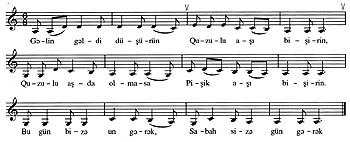 Növbəti hissədə tək qalmış oyunçu qaliblərə «Qıza diləyə gəlmişəm» deyə müraciət edir. Bu hissə toy mərasiminin elçilik mərhələsi ilə, elçi gedib qız istəməklə səsləşir və bütün oyunçuların qayıtması ilə, yə’ni tarazlığın, ədalətin bərpası ilə başa çatır. Melodik cəhətdən II və III hissənin uyğunluğu barədə mə’lumatımız dəqiq deyildir. Bə’zi mənbələr burada eyni melodiyanın istifadə olunduğunu göstərir, eyni zamanda musiqinin dəyişə bilməsi də istisna edilmir.