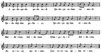 Kiçik bir qutudan düzəldilən nağara, iki dənə çubuxla vurulur. Uşaqlar bu mahnını xorla oxuya-oxuya gödü kəllə-mayallaq aşır.