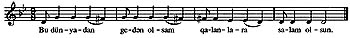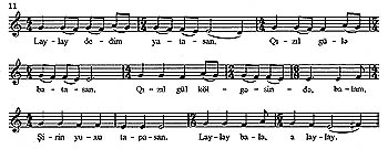 Misal 3. A gülüm sabahdır. Qax, Sarıbaş k. («Female folklore from Azerbaijan». Müəllif – T.Kerimova.