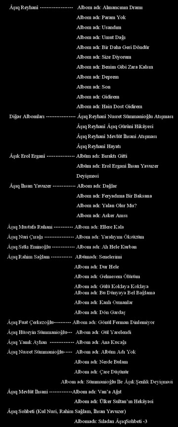 Бу арашдырмада Ярзурумлу ашыглардан щал-щазырда йашайан вя мцхтялиф мусиги албомлары йолуйла танынмыш ясас он цч ашыьын ясярляри тядгиг едилмишдир. Тядигигат заманы бу ашыглардан йедди няфяр иля шяхсян эюрцшяряк онларын ифа етдикляри вя йаратдыьы ашыг щаваларынын бир щиссяси нота алынараг тящлил едилмишдир. Бу ашыгларын ифа етдикляри щаваларын яксяриййяти албом шяклиндя мцхтялиф шякиллярдя сийащы шяклиндя тягдим олунур. Тящлил едилмыш бу ясярлярля йанашы щямин ашыглара мяхсус диэяр щаваларын да нота алынараг тящлил едилмяси вя динляйижиляря чатдырылмасы нязярдя тутуылмушдур.Адлары гейд олунан бу Ярзурумлу ашыгларын адлары вя ифа етдийи ясас щаваларын йерлярляшдийи албомлар ашаьыдакы кими сыралана биляр: