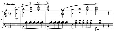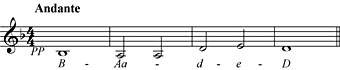 Бурада диггяти жялб едян бир мараглы мягам да вардыр. Айры- айры бястякарларын ад вя сойадындакы сяс символлары бир-бири иля сых баьлыдыр вя бюйцк тарихи мясафяляр беля онлара янэял ола билмир. Бах, Шуман, Шостакович, Шнитке монограмларынын арасындакы охшарлыьа диггят йетиряк (БАЖЩ, ДСЖЩ, АСЖЩ, СЖЩ(ниттке). Ики мцштяряк “до - си” интонасийа юзяйи мусиги тарихиндя сяс-символларынын башлыжа структур модели олдуьуну бир даща исбатлайыр. Ян важиби ися одур ки, бу символлар юз дахилиндя мусигинин язялиндя дуран яввялинжи вя сонунжу сясляри ещтива едир (!).
