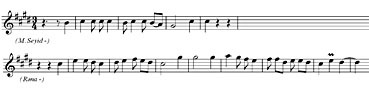 Мараглы нцмунялярдян бири кими Мир Сяидин Ряна иля дует сящнясини дя эюстярмяк олар. Дуети Азярбайжан халг мелосуна хас олан чохметриклик (6/8, 3/4) фяргляндирир. Бу сящня Ц.Щажыбяйлинин илк операларынын яняняляри ясасындадыр. Бурада щяр ики гящряманын репликасынын башланьыжынын яввялки фразанын сону иля «баьлылыьыны» мцшащидя етмяк олар ки, бу да мелодик няфясин фасилясиз, ахыжы олмасыны эюстярир.