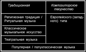 и Юго-Восточной Азии (индо-буддийская цивилизация). Именно в музыкальных культурах этих стран сложились классические традиции надэтнического уровня3, сопоставимые с европейским музыкальным искусством.