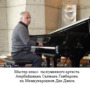На первом Международном Дне Джаза Азербайджан был представлен молодым пианистом, Победителем конкурса пианистов в рамках джазового фестиваля в Монтре (2009) Исфаром Сарабским и группой “Бакустик джаз” Салмана Гамбарова, а автору данной статьи было поручено в небольшом докладе с фотослайдами познакомить публику с историей зарождения и джаза в Азербайджане. Очень приятно сейчас вспомнить особое уважительное отношение к нашим музыкантам. Стоит лишь подчеркнуть тот факт, что на итоговый гала-концерт под названием “Хэнкок и его друзья” азербайджанский молодой джазовый пианист Исфар Сарабский был приглашен лично Х.Хэнкоком, и имя его было внесено в своего рода эмблему-плакат праздника - в обложку очередного номера журнала ЮНЕСКО “Курьер”. С другой стороны, выступление на сцене с ведущими мастерами джаза, с такими, как Маркус Миллер, Джордж Бенсон, Ди Ди Бриджуотер, Бирели Лагрэн, Таниа Мариа, Хью Масекела и другими звездами, стать зрителем живых выступлений для любого музыканта всегда приятный факт. И.Сарабскому в этом плане повезло вдвойне - помимо такой возможности, ему посчастливилось выступить в тесном партнерстве с Тэрри Лайн Кэррингтон (ударные), Бен Уиллиамс (бас-гитара), Игорем Бутманом (саксофон). Совместная энергично-свинговая импровизация музыкантов на тему Дж.Гершвина “But not for me” вызвала горячие овации и предварила выступление известной оперной певицы Барбары Хэндрикс с джазовым трио. А на сайте www.unesco.org, откуда можно подробно узнать об этом событии, в рубрике рекомендаций, среди нескольких композиций в качестве музыкального сопровождения были выбраны и сочинения Исфара, а также выложено эксклюзивное интервью с молодым пианистом.