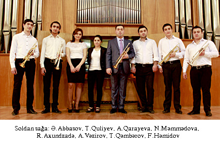 БМА-нын Бюйцк залында кечирилян консерт мусиги ичтимаййятиндя бюйцк мараг доьурду. Бу бир даща тясдиг етди ки, мис няфяс алятляриндя ифачы кадрларын щазырланмасы ишиня йцксяк диггят йетирилир. Бу да тябиидир. Беляки няфяс алятляри ифачылары оркестр тяркибиндя даим ещтийаж дуйулан щейятдир вя бу сащядя йахшы мцтяхяссисляр чох вахт демяк олар ки, йетярли олмур. Ялбяття мис няфяс алятляринин оркестрдяки ящямиййятли ролу, онун дашыдыьы емосионал йцк данылмаздыр. Билдийимиз кими оркестр мусигисинин спесификасы да белядир ки, мусигинин йцксяк эярэинлик анлары, драматык кулминасийалар мис няфяс алятляринин билаваситя иштиракы иля щяйата кечирилир. Вя мис алятлярин кейфиййятли сясляниши дя бир чох щалларда мусигинин динляйижийя емосионал тясир эцжцнц сяжиййяляндирир. Бах бу естетик факторун ящямиййятини гиймятляндирмямяк ялбятдя ки , мцмкцн дейил.