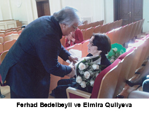 Бащарын илыг няфяси дуйулдуьу эцнлярдя Ц.Щажыбяйли адына Бакы Мусиги Академийасынын щяйатында даща бир яламятдар щадися баш верди. “Соло охума вя опера щазырлыьы” кафедрасынын профессору, Азярбайжан Республикасынын Ямякдар Мядяниййят ишчиси, юмрцнц шяряфли мцяллимлик пешясиня щяср етмиш Елмира ханым Гулийеванын 85-иллик йубилейи гейд олунурду. Бу йубилей мцнасибяти иля БМА-нын Бюйцк залында кафедранын мцяллим вя тялябяляринин иштиракы иля мараглы консерт програмы тяшкил олунмушду. Консертин яввялиндя ректор, ССРИ Халг артисти Ф.Бядялбяйли Е.Гулийеваны бцтцн коллектив адындан сямими гялбдян тябрик едяряк, онун педагоъы фяалиййятини чох йцксяк гиймятляндирдийини, Азярбайжанда классик вокал мяктябинин инкишафында вя вокал тядрисиндя Елмира ханымын бир педагог кими явязсиз ролу олдуьуну хцсуси вурьулады. Онун бу али мяктябин щяйатында, эянж вокалчыларын йетишдирилмясиндя мцстясна хидмятлярини бир даща гейд етди. Сонра бир-бирини явяз едян мараглы мусиги нюмряляри сясляндирилди. Програма Азярбайжан бястякарларынын, Рус, Гярби Авропа вя с. бястякарларын ясярляри дахил едилмишдир.