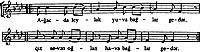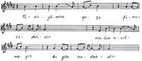 Yuxarıdakı nümunədən aydın olur ki, melodik ibarələr şer misralarının sətirdaxili bölgüsünə (burada 11 hecalı misra 6+5 kimi qruplaşır) uyğun olaraq bölünür. Bu da şerin quruluş xüsusiyyətlərinin mahnının melodiyasında dolğun şəkildə tərənnüm olunmasını göstərir.