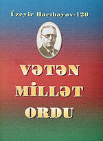 Birinci kitab «Vətən, Millət, Ordu» adlanır. Bu kitabda Üzeyir Hacıbəyovun sırf vətənpərvərlik mahnıları toplanmışdır. Bildiyimiz kimi, vətən-pərvərlik mahnıları Üzeyir bəyin sevərək müraciət etdiyi və xüsusi əhəmiyyət verdiyi janr olmuşdur.