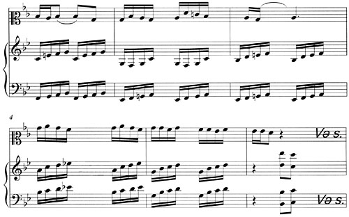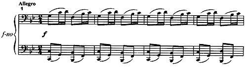 Ясярин биринжи щиссяси 4 ханяли оркестр эириши иля башланыр. Бурада шур ладында бяргярар олан щармоник фигурасийалардан зювгля истифадя олунмушдур: (Нцмуня 1.)