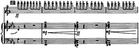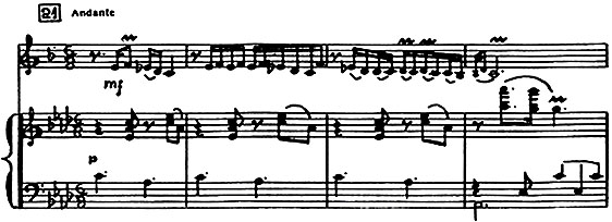Бурада да форшлаглар вя триоллар мцщцм ифа штрихи кими якс олунур. Щиссянин Ы вя ЫЫ щиссяси реприз характерлидир. Синкопалы ифа вя мелизмалы форшлаглар алятин хцсуси ифа принсиплярини мейдана чыхардыр.