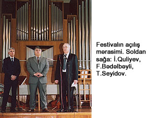 Бакы Мусиги Академийасынын Бюйцк залында, Фестивалын ачылыш мярасиминдя чыхыш едян БМА-нын ректору, ССРИ-нин вя Азярбайжан Республикасынын халг артисти, профессор Фярщад Бядялбяйли мяктяб-студийанын коллективини, башда директору, профессор Тярлан Сейидов олмагла, йубилей мцнасибятиля тябрик едяряк, мяктяб студийанын республиканын мусиги тящсили сащясиндяки вя мусиги щяйатындакы ролуну дяйярляндирди; Мяктяб-студийанын наилиййятляриндя Т.Сейидовун ролуну хцсуси олараг вурьулады. Даща сонра ися Ф.Бядялбяйли Фестивал иштиракчыларына мцражиятля гейд етди: «Биз чох шадыг ки, классик мусигидя чалышан ушаглар бу мцгяддяс сящнядя чыхыш едяжякляр. Бу сящнядя дащи Цзейир бяй, Нийази, Я.Бядялбяйли, Ж.Жащанэиров, Ф.Ямиров, Г.Гарайев, С.Рцстямов чыхыш едиб, бу сящня бизимчцн чох мцгяддясдир… Бу, ушаглар цчцн фестивалдыр. Ушаглар хошбяхт олмалыдыр ки, биз дя хошбяхт олаг».