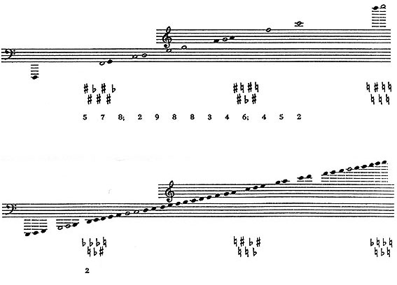 Кейдж по-своему трактовал понятия формы и структуры. В статье «Предшественники современной музыки» (1948) автор изложил свою теорию музыкальной композиции, включающей 4 элемента: материал, метод, структуру и форму. «Структура в музыке это ее делимость на части от мелкой фразы до крупной секции. Форма есть содержание, целостность. А метод — способ управления целостностью нота за нотой. Материалом музыки являются звук и тишина. Композиция — это интеграция всего вышеперечисленного» 6. Структура в системе Кейджа оказалась не менее важным элементом, чем форма, так как под формой он понимал целостность музыкального произведения, глубинное его измерение, структура же — это условие, основа и первопричина этой целостности, конкретное ее воплощение в виде числовой формулы, определяющей все уровни композиции.