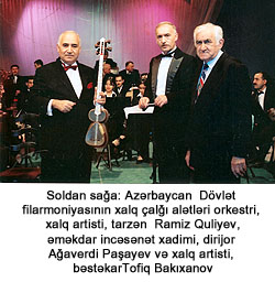 Мян Пленумда сяслянмиш ян мцвяффягиййятли ясярлярин гаршыдан эялян Гурултайын програмына дахил едилмясини тяклиф едирям. Гурултайда бу оркестрин иштиракы иля ики шюбядян ибарят консерт програмы тяртиб етмяк олар: Ы щисся - ансамбл ясярляри; ЫЫ щисся - ири формалы ясярляр.
