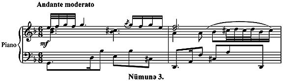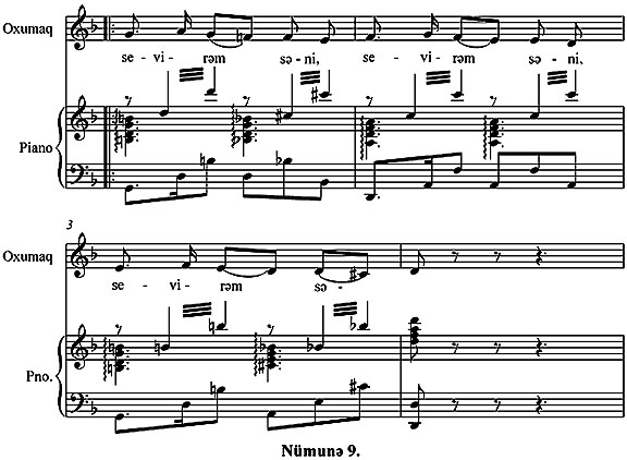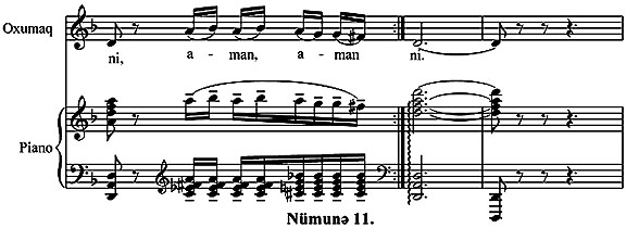 Мусиги динамикасы бахымындан мцшаиййятин эцжлц дястяйиня ещтийажы олан бу ханяни щармоник жящятдян эярэин вя долу ишлямяк мягсядяуйьун оларды: (Нцмуня 11.)