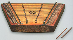 Мцасир дюврцмцздя йатыг сазларын ян типик нцмуняляриндян бири сантур адланыр. Сантур щазырда Иранда йашайан мцхтялиф халгларын ян севимли вя чох йайылан алятидир. Алятин мцхтялиф формаларына вя гурулушларына да бу юлкядя даща чох тясадцф едилир (шякил 31).