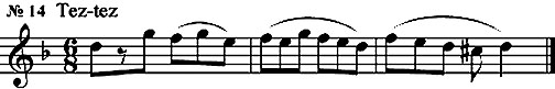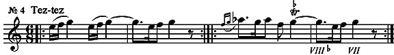 Сонракы ЫЫ вя ЫЫ мусиги дцзцмляриндя ися енян сяжиййяли секвенсийап васитясиля майейи сеэаща-йюнялмя баш веряряк там кадансла «си» тоникалы рягс майейи-сеэащда тамамланыр.