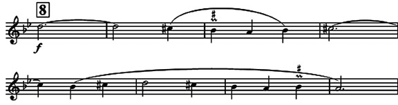 Солистин партийасында кантилен мелодийаны оркестрдя ясас мювзу контрапункт кими мцшайият едир. Периодун икинжи йарысында солист вя оркестр канон шяклиндя бир-бирини тяглид едир. Кюмякчи мювзунун орта щиссяси полифоник инкишаф цсулларына ясасланыр, бурада 3 сясли канон верилир. Кюмякчи мювзунун репризасы оркестрдя сяслянир, бурада да полифоник елементляр истифадя олунур. Цмумиййятля, бцтцн кюмякчи мювзу полифоник фактурайа ясасланыр. Тамамлайыжы мювзу канон шяклиндя кюмякчи мювзунун елементляриндян гурулур.