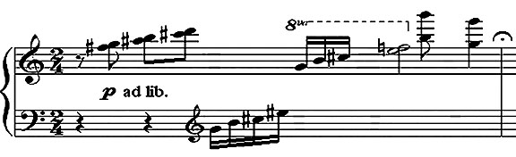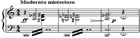 Дуетин ардынжа дянизин сащилиндя Волканын йухуйа эетмяси сящняси башлайыр. Дянизи тясвир едян кичик мювзудан сонра, Гожа Хоттабыч образынын сящняйя чыхажаьындан хябяр верян диссонанс интерваллар сяслянир. Йухусунда Волканын гаршысында Хоттабычын пейда олмасыны ися септаккордлар мцшайият едир. Операда бир нечя дяфя мцхтялиф ритмик гурулушларда сяслянян бу септаккордлар, Хоттабычын мящз мянфи дахили аляминин лейтмотивидир. Бу сябябдян совет дюврцнцн критерийаларына уйьун олараг, ясярин сонунда идеаллашдырылан гящряманын бу лейтмотиви ясасян операнын яввялиндя сяслянир. (Нцмуня 2.)