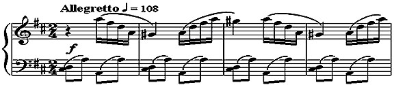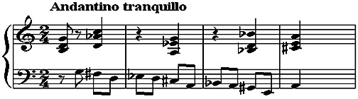 Хоттабычын сещрбазлыг лейтмотиви бир нечя дяфя онун сещрбазлыьыны мцшайият едир. Бунунла бярабяр, онун икинжи пярдядя даща бир лейтмотиви вар. Хоттабычын вокал партийаларыны оркестрля дяфялярля мцшайият едян бу мювзу сакит, лирик ящвал-рущиййядя вя бир гядяр сирли мистик интонасийа чаларларындадыр. (Нцмуня 5.)
