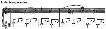 “Темпо примо” гейд олунан щиссядян ясас мювзу бир гядяр дяйишилмиш шякилдя гайыдыр вя даща зяриф, няжиб бир сяслянишля тягдим олунур. Бурада фактура бир гядяр мцряккябляшир - ики сясли мювзу артыг цч сясли шякилдя тягдим едилир. Бунун нятижясиндя яввялки мювзу ялавя сурят жизэиляри вя хцсусиййятляри юзцня жялб едяряк даща дольун вя щяйяжанлы сяслянир.