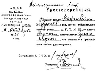 Цчцнжцсц, Яфрасийаб щяля мяктябли йашларында икян Ц.Щажыбяйовун мусигиси иля йахындан таныш ола билмишди. Бядял бяй ону юзц иля Цзейир бяйин ясярляриня тамаша етмяйя, ейни заманда Шярг консертлярини динлямяйя, драм тамашаларына бахмаьа апарырды. Одур ки, Яфрасийаб юз тарында муьамларла, халг мащнылары вя тяснифляриля йанашы, Цзейир бяйин халг арасында популйар олан мелодийаларыны да щявясля чалырды.