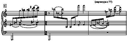 Ж.Щажыйевин В симфонийасындан олан бу мусиги нцмунясиндя фортепианонун ифадясинин юзцнямяхсус вя характерик ясасы вардыр. Мусиги хятти бурада бу гайдада тяшкил олунур вя мусиги фикринин гурулушу дцшцнмянин импровизасийа азадлыьыны сяжиййяляндирир. Мящз импровизасийа азадлыьы бу интонасийада мусиги хяттини яввялжядян мцяййян едир. Биринжиси, бурада мцяллиф тяряфиндян конкрет интонасийа йазылыб, ифачы вя дириъор она жидди сурятдя ямял едир. Икинжиси, бу интонасийанын соло гурулушу мусиги епизодунун тярз вя характериня уйьун олараг ясас мювзунун ифадясинин микроелементлярини «йарадан» мцяллифин импровизасийа тяхяййцлцня табе олур. (Нцмуня 1.)