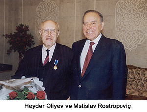 1997-жи илдя М.Ростропович она щяр заман арха дуран досту Щейдяр Ялийев жянабларыны 70-иллик йубилейиня Парися дявят едир. Азярбайжан Президенти Щейдяр Ялийев цзяриндя олан мясулиййятя, сабащысы Моквада дювлят башчылары саммитиндя иштирак етмясиня бахмайраг, щямйерлисинин дявятини гябул едир. Орадан ифтихар щисси иля гайыдан Щейдяр Ялийев М.Ростроповичя мяктуб эюндярир: «Чох щюрмятли Мстислав Леополдович!