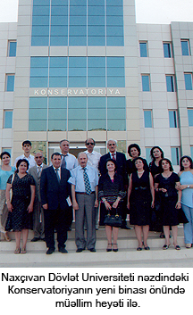 Нахчыван сяфяринин даща бир мараглы вя парлаг тяяссцраты Нахчыван Дювлят Университети няздиндя фяалиййят эюстярян Консерваторийанын иши иля йахындан танышлыг олду. Хцсусиля, кечян ил Консерваторийанын ихтийарына верилмиш вя там мцасир сяпкидя тикилмиш мющтяшям бина гонагларын бюйцк мараьына сябяб олду. Университетин ректору, академик Иса Щябиббяйли билдирди ки, бу тящсил мцяссисясиндя 1994-жц илдян етибарян мусиги ихтисасы цзря мцтяхяссисляр щазырланмаьа башланмыш, 1998-жи илдя ися Университетин инжясянят факултясиндя Консерваторийа ачылмышдыр. Щал-щазырда Консерваторийада фортепиано, оркестр алятляри, халг чальы алятляри, мусигишцнаслыг кафедралары мювжуддур. Бу йахынларда ися Бястякарлар Иттифагынын Мухтар Республика Али Мяжлисинин Сядри жянаб Васиф Талыбова цнванладыьы мяктубуна ясасян бястякарлыг кафедрасы фяалиййятя башланмышдыр. Кафедрайа Нахчыван Бястякарлар Тяшкилатынын мясул катиби, Президент мцкафатчысы, бястякар Камал Ящмядов башчылыг едир. 2000-жи илдян Консерваторийада опера студийасы фяалиййят эюстярир ки, онун тамашайа гойдуьу «Аршын мал алан» опереттасы бир сыра харижи юлкялярдя, о жцмлядян Тцркийя вя Русийада нцмайиш етдирилмишдир. Консерваторийанын мцяллим щейятиля эюрцшдя чыхыш едян Фирянэиз ханым Ялизадя бурада эюрдцкляриндян мямнунлуг ифадя едяряк, Нахчыван Бястякарлар Тяшкилаты сыраларынын эяляжякдя Консерваторийанын юз йетирмяляри иля эенишляняжяйиня цмидвар олдуьуну сюйляди.